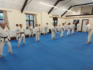The seminar began with movement drills, ensuring everyone was light on their feet and able to change direction efficiently. This progressed into work on avoidance, focusing on moving the body to evade sweeps and jodan attacks. The session concluded with kata, exploring a different approach to practising kata effectively in limited space. By the end of the session, there were plenty of red faces leaving the dojo.